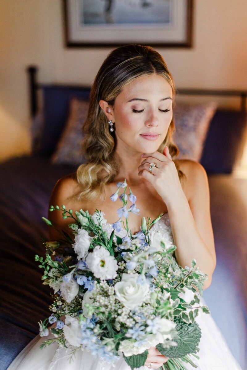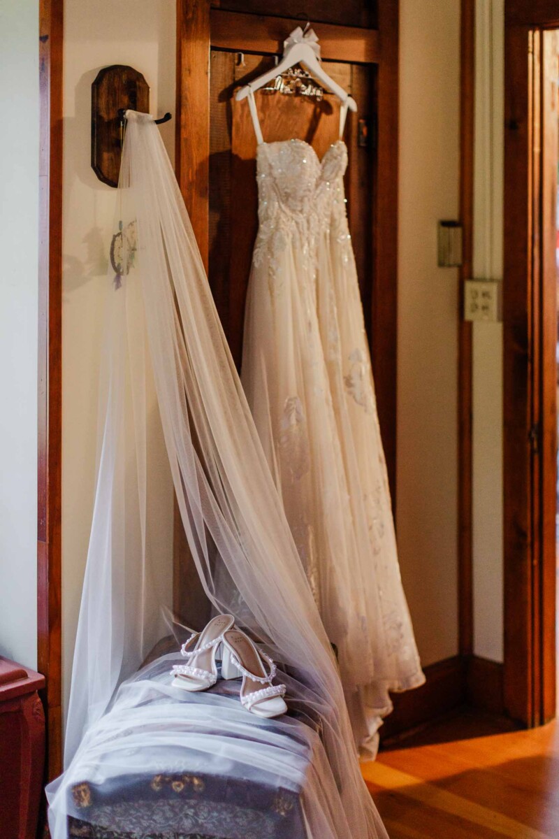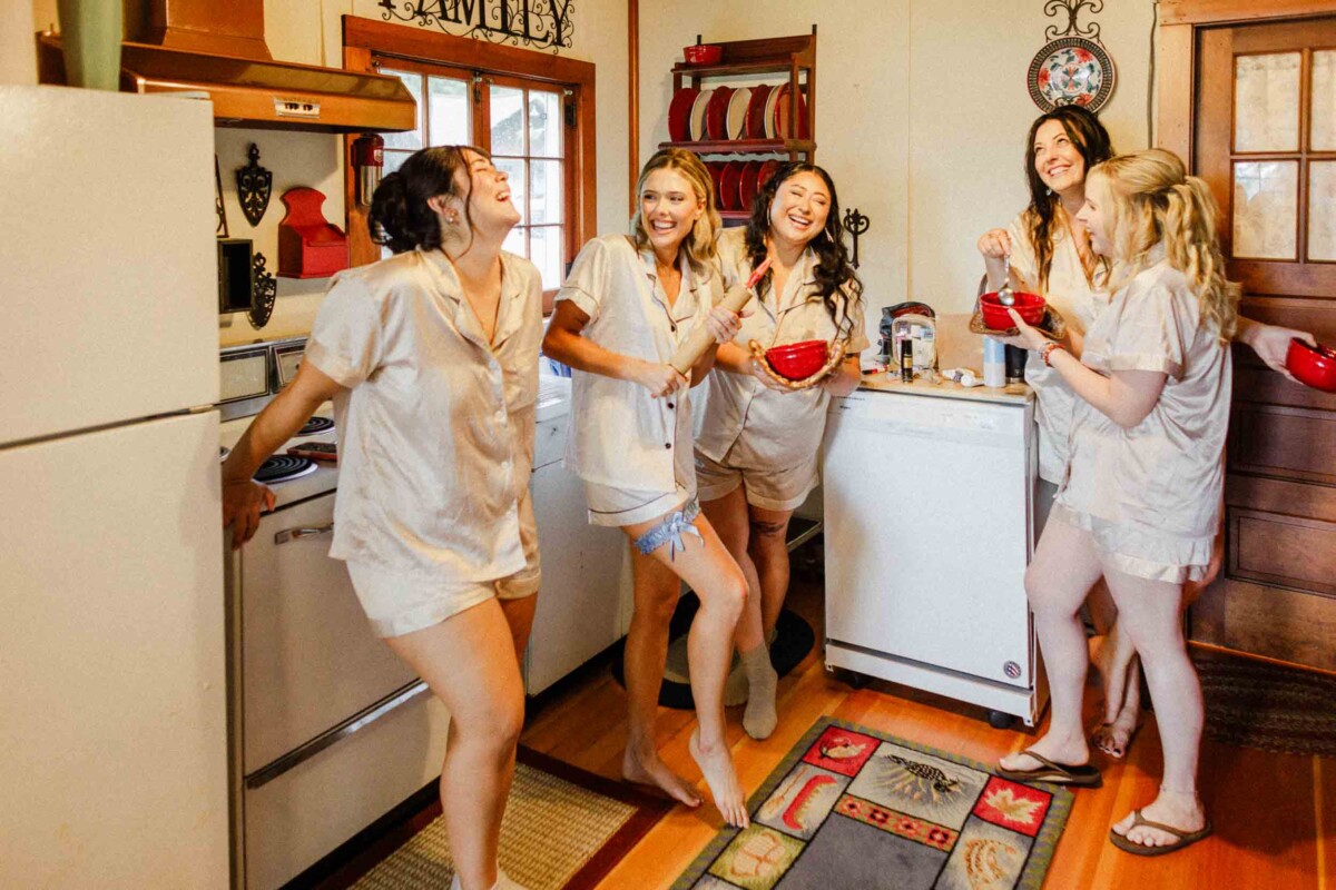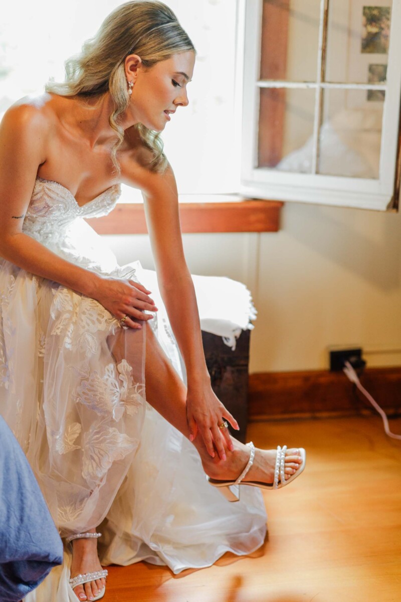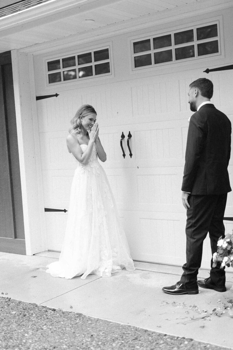 The morning unfolded quietly in two cabins—Gianna and her bridesmaids prepared at a cozy retreat on Plummer Lake Road, surrounded by the scent of pine trees and soft lake breezes. Details like her lace gown, heirloom jewelry, and hand-tied florals set a tone of understated elegance. Cody and his groomsmen, just down the road at the ceremony site on White Feather Lane, shared laughs while straightening ties and enjoying the calm before the vows.