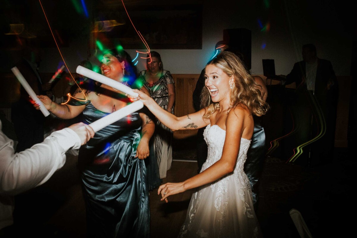 Following the ceremony, friends and family headed to The Waters of Minocqua, where cocktail hour buzzed with laughter and clinking glasses. Elegant tablescapes, soft candlelight, and greenery carried the cabin-chic theme indoors. Heartfelt speeches gave way to a lively dance floor, punctuated by a sparkler exit under the Northern Wisconsin sky.