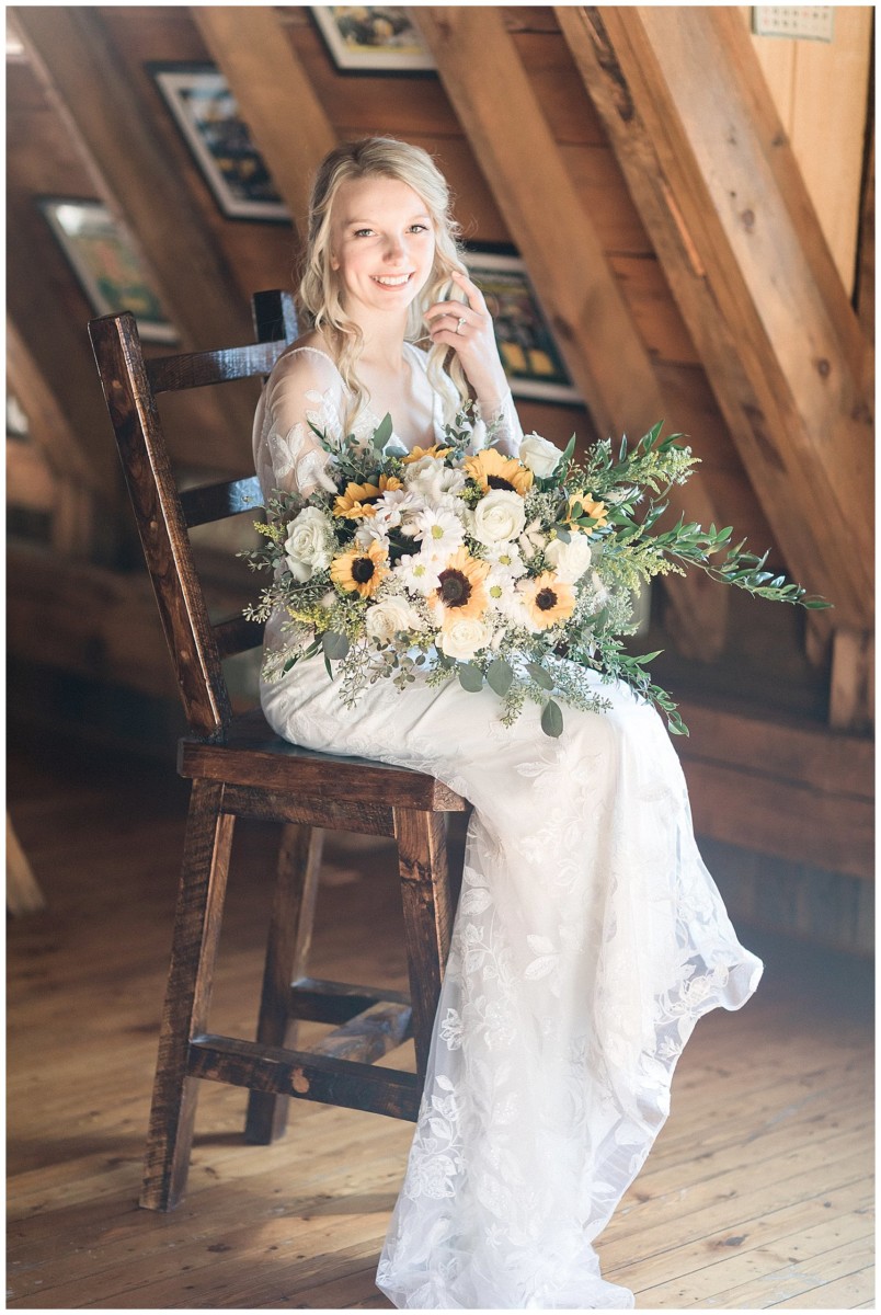All eyes were on Alexis as she elegantly walked down the aisle wearing a classic wedding gown from Bliss Bridal. The gown’s fabric was a combination of Illusion Tulle, Pia Lace, and intricate Yuki Knit Lining. Her gown was complimented with a long wedding veil, making her overall ensemble simply striking from every angle. The wooden backdrop of the church highlights that gorgeous wedding gown and that beautifully-made wedding bouquet out of fresh flowers.