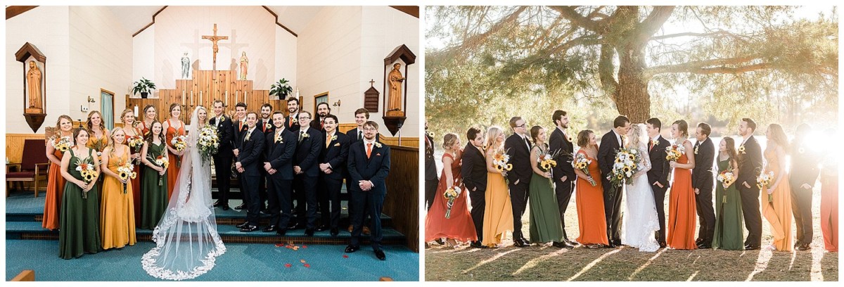 Her bridesmaids were also a showcase of vibrant color, making the occasion even more lively. Their gorgeous wedding gowns were a mixture of different colors of the fall season: a combination of ivory & Charcoal Gray along with Paprika (Orange), Butterscotch (Yellow), Olive (Green), & Rust (Red).